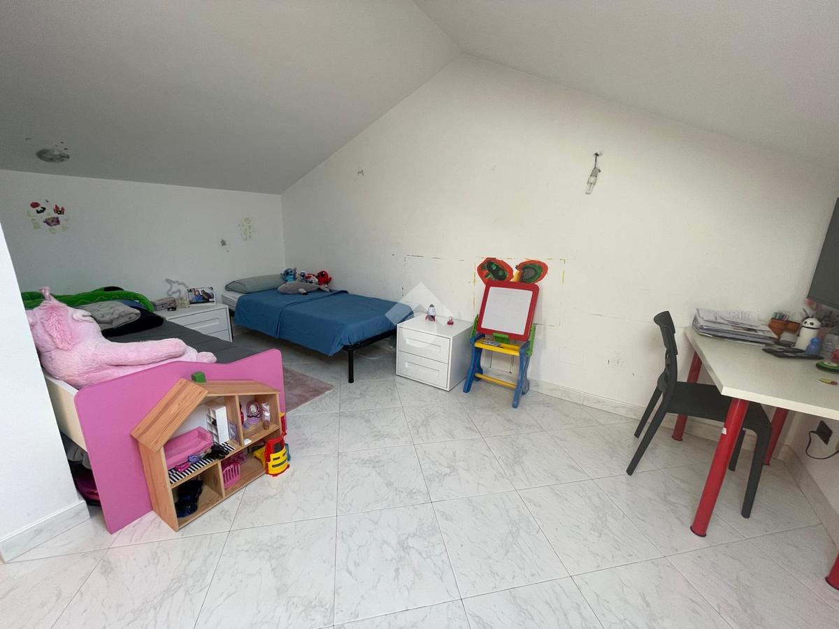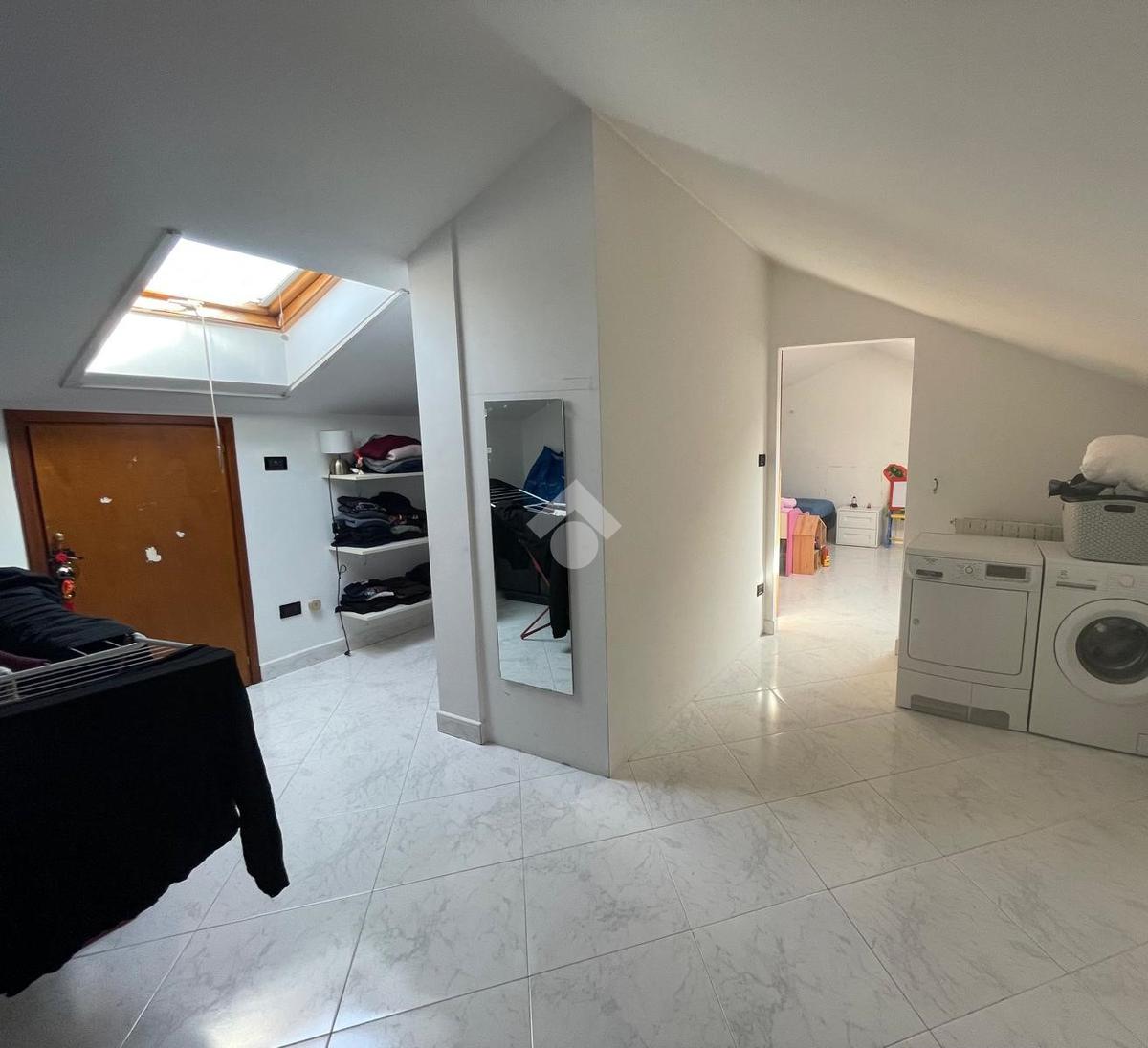 Nella solare zona collinare, e più precisamente in via Tagliamento, luminoso appartamento bilivello con camera matrimoniale al piano. Questa proprietà di 110 mq, costruita nel 1995, offre un ambiente spazioso e ben distribuito su due livelli. Al piano secondo l'ingresso è living sul salone con ampio balcone , la cucina è abitabile e gode di un terrazzino attrezzato con tavolo e sedie che si affaccia sul panorama unico della collina morenica, il bagno è servito da un comodo e moderno piatto doccia, la camera da letto è matrimoniale. Tutta la pavimentazione del piano è in legno compreso il bagno. Nel piano mansardato, collegato internamente con scala in legno, sono presenti due spaziose camere da letto con predisposizione per un ulteriore bagno. L'appartamento è stato recentemente ristrutturato, offrendo un ambiente moderno e accogliente . La posizione collinare assicura una vista panoramica e una luminosità naturale invidiabile. Inoltre, la vicinanza alle fermate del bus rende gli spostamenti quotidiani semplici e comodi. Completano la proprietà una cantina e un box auto, offrendo ulteriore spazio per le vostre esigenze di stoccaggio e parcheggio.